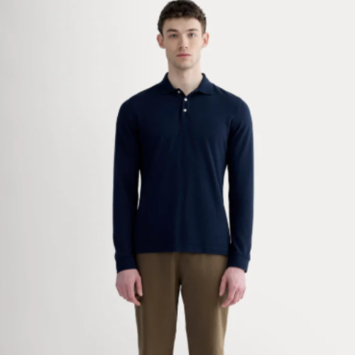 Everlane`s men`s polo shirts combine style, comfort, and sustainability. Each shirt is made from high-quality organic cotton. The brand’s commitment to ethical production and Radical Transparency ensures that every purchase supports responsible practices. Whether you opt for the classic Short-Sleeve Polo or the versatile Long-Sleeve Pique Polo, you`re selecting timeless pieces crafted to last.