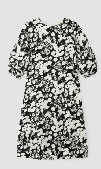 As summers approach it gets hard to wear a full-sleeved dress but this linen A-line midi dress allows you to wear long sleeves without getting all sweaty because of its cool fabric. This dress comes in three colors/prints, a plain black color, a black and white floral print, and a white color with navy blue lines on it. It has a midi length with a crew neckline giving it a very chic vibe.