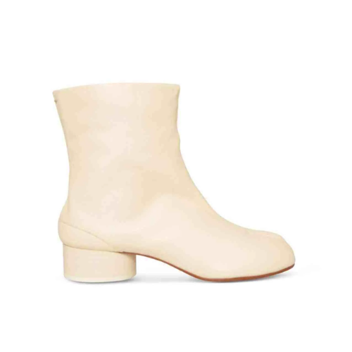 Tabi Ankle Boots come for an iconic look, and boast a 3cm block heel, providing both ultimate comfort and style. The unique split-toe design ensures you make a statement wherever you go, setting you apart with a distinctive touch. These sleek ankle boots come from the MAISON MARGIELA brand, available in white color and different sizes.