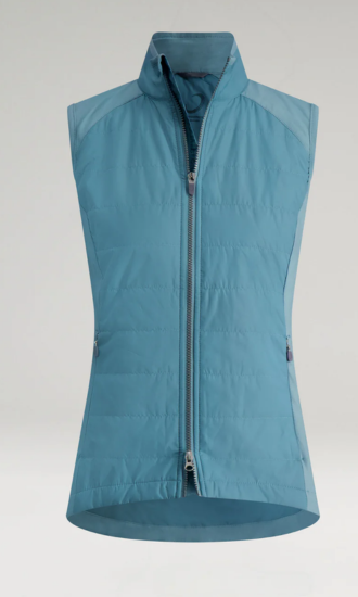 The TESS Vest by Zero Restriction is a versatile sleeveless jacket designed for women. It provides warmth without restricting movement, making it ideal for layering. The vest is made from high-quality materials and features a stylish design suitable for various occasions. It`s perfect for outdoor activities like golf or hiking, keeping you comfortable and stylish in changing weather conditions.